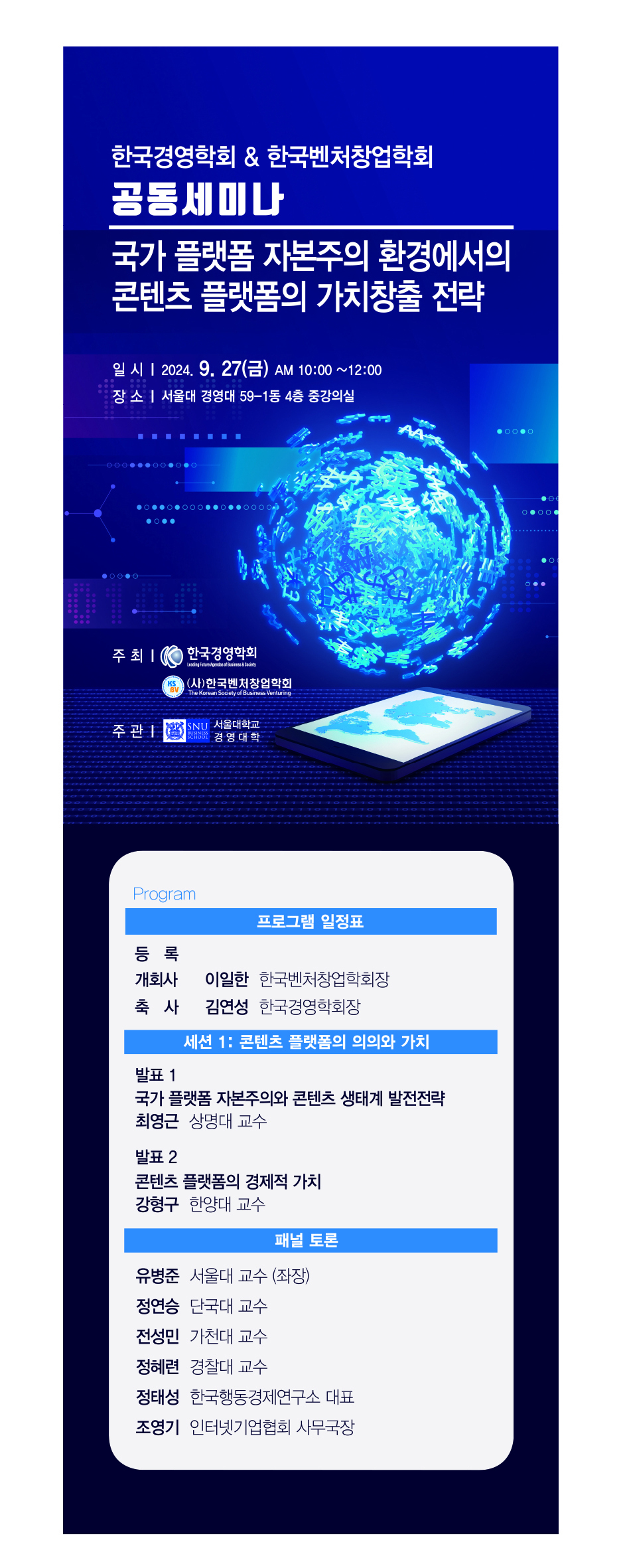 [한국경영학회] 한국경영학회ㆍ한국벤처창업학회 공동세미나 안내(9/27(금), 10시)