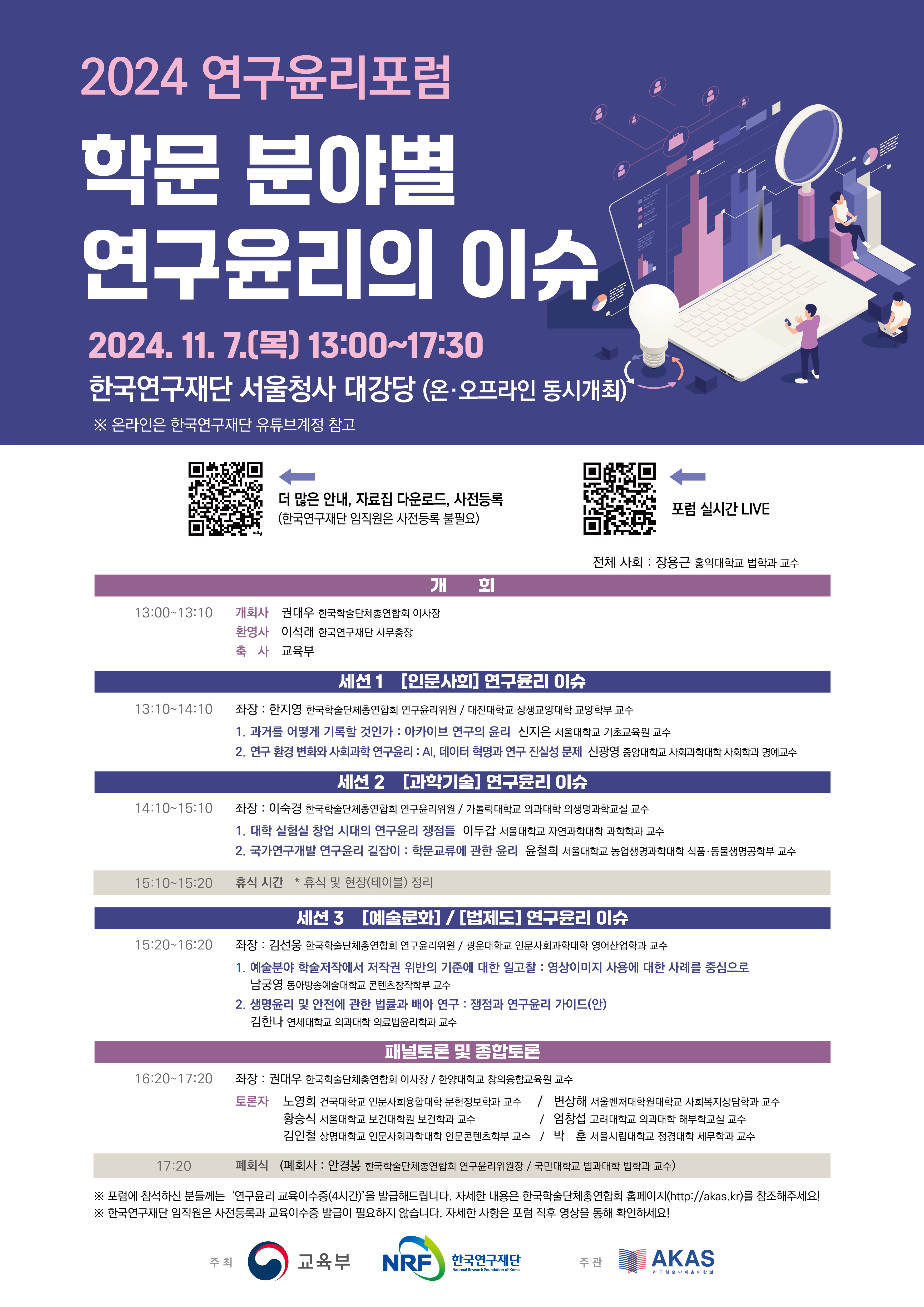 ◈ 2024년 연구윤리포럼 사전등록 및 온라인 생중계 안내