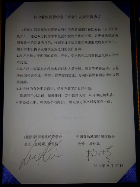 2013년 중국 청도 MOU
