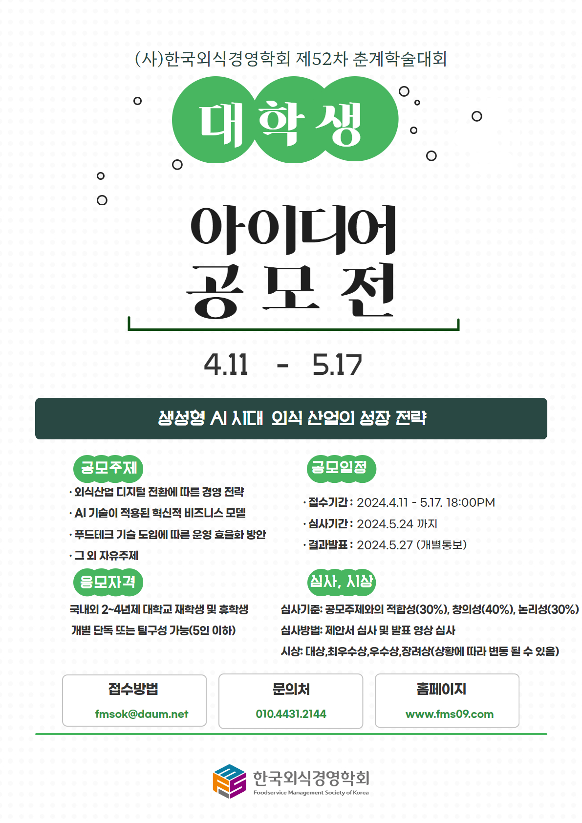 (사)한국외식경영학회 제52차 춘계학술대회가 다음과 같이 개최됩니다.