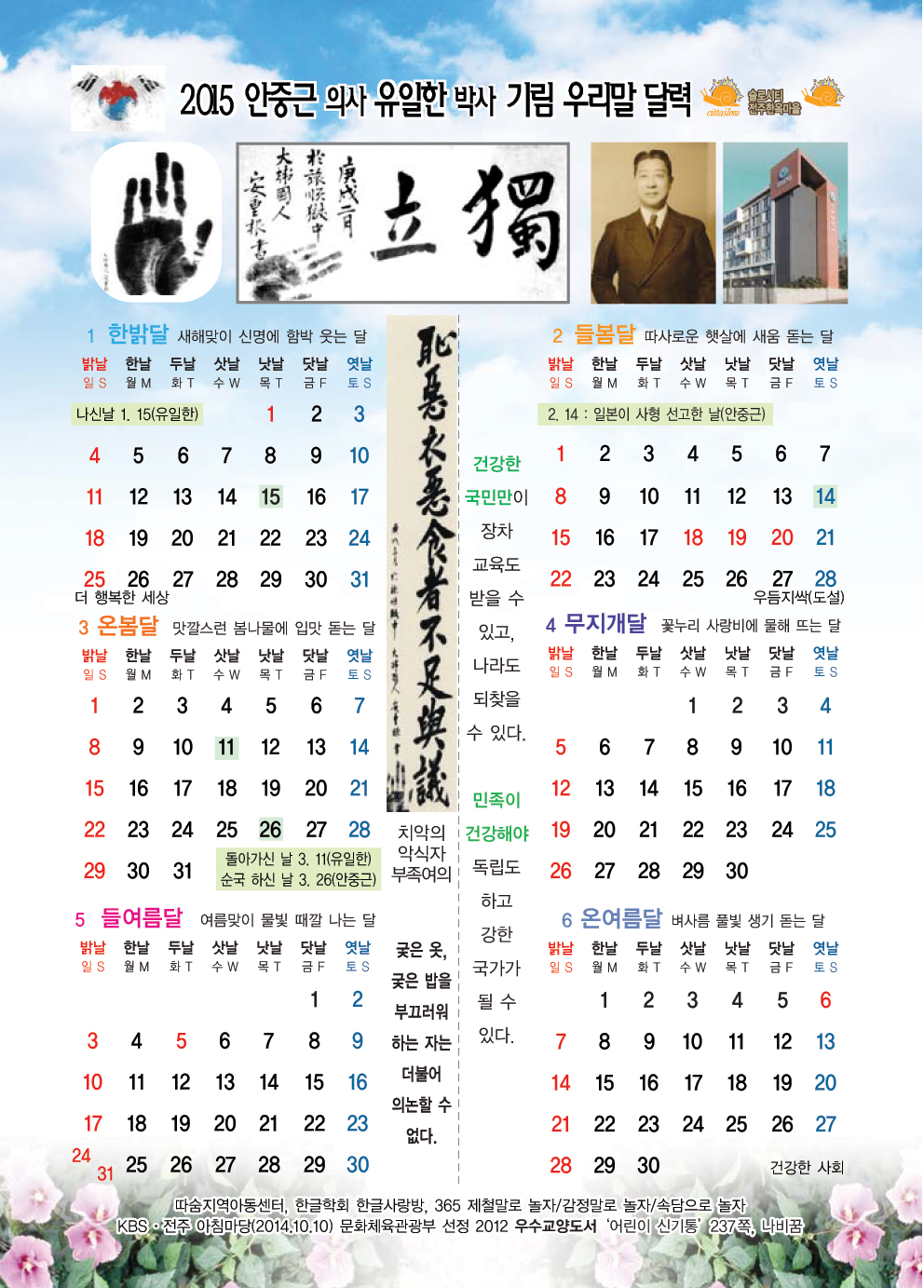 2015 우리말 달력